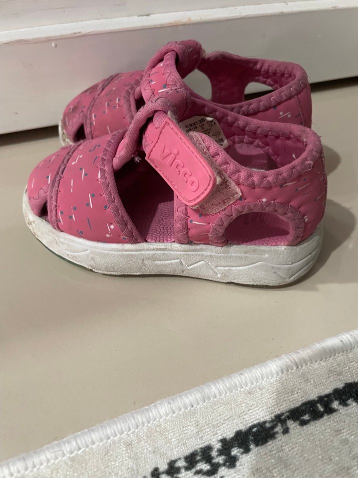 Vicco marka, pembe renkli, cırt cırtlı, kauçuk malzemeden yapılmış kız çocuk terliği, rahat ve şık sokak tarzı için uygun.