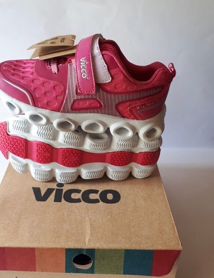 Vicco marka kız çocuk spor ayakkabısı, pembe renkli, renkli baskılı ve cırt cırtlıdır. Kalın kauçuk tabanıyla sokak modasına uygundur. Ürün giyilmiştir. Son fotoğraflara dikkat lütfen