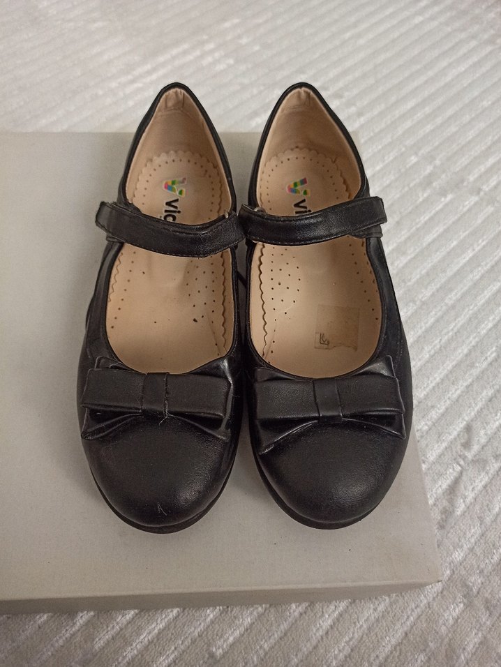Kız çocuklar için siyah tokalı babet ayakkabı. Fotoğraflarda göründüğü gibidir.