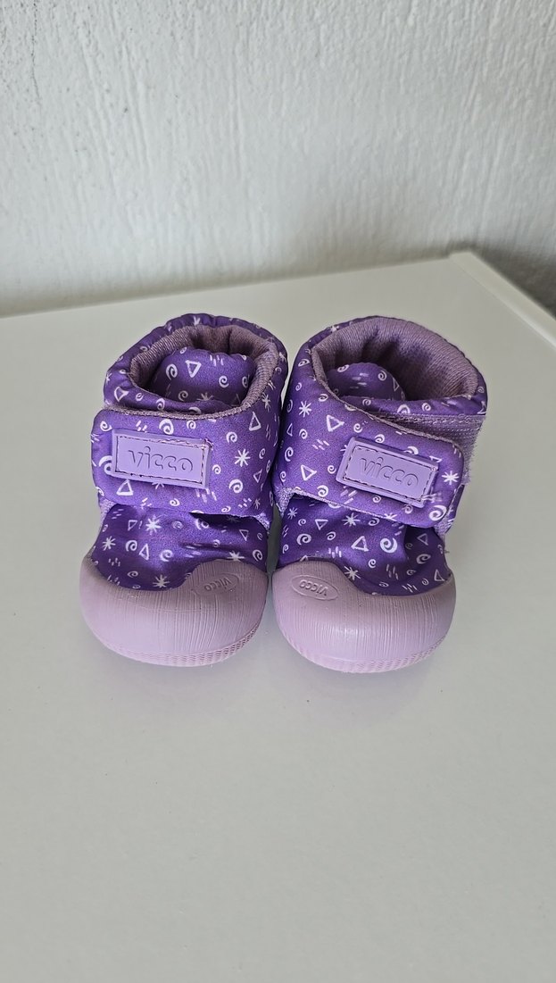 kışın bebeğiniz ayağını sıcacık tutacak Mor renkli, bağcıksız cırt cırtlı, ortopedik, bağlamalı desenli kız bebek ilk adım ayakkabısı. mevsiminde ayakları büyük olduğu için hiç kullanılmamıştır.