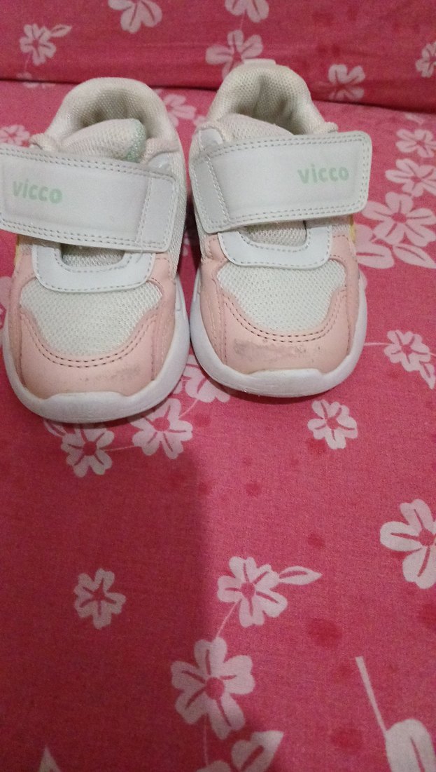 Vicco marka, cırt cırtlı, pastel pembe baskılı ve kauçuk tabanlı kız çocuk spor ayakkabısı, rahat sokak stili için uygun.