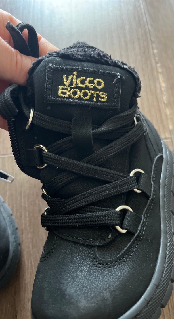 Vicco marka siyah erkek çocuk botları, nakış detaylı, kauçuk malzeme ve cırt cırtlı kapanışa sahip, rock punk tarzı için uygun.