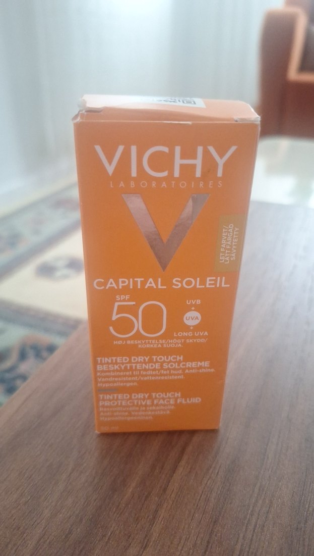 Vichy Capital Soleil SPF 50 tonlu renkli güneş kremi sadece 2 defa kullandım oda mercimek tanesi kadar renkli güneş kremi kullanamadığım için satıyorum