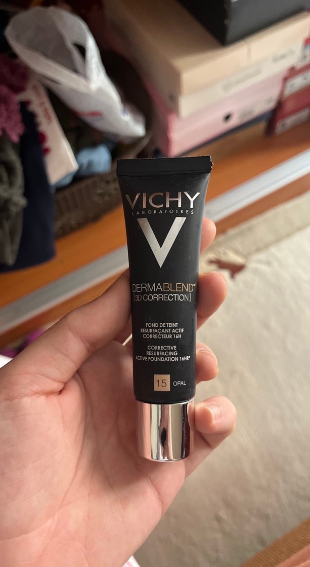 Vichy Dermablend 3D Correction fondöten, 15 Opal renk, parlak bej tonunda, 16 saate kadar düzeltici ve yenileyici etki sağlar. ✨