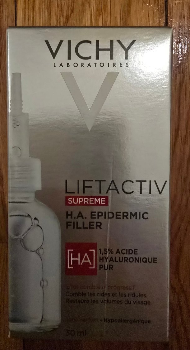 Vichy Liftactiv Supreme serumu, %1,5 saf hyaluronik asit içerir, kırışıklıkları ve ince çizgileri doldurur, yüz hacmini geri kazandırır. 30 ml, bayi eczane ürünü, hiç kullanılmadı