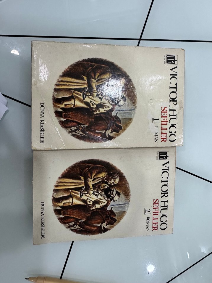 Victor Hugo'nun 'Sefiller' adlı romanının 1. ve 2. ciltleri, Donya Kiasikler yayınevinden Türkçe baskı. Klasik eser.1990 basımı