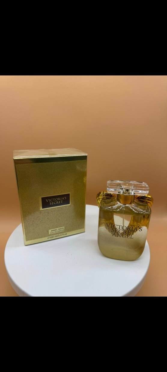 Victoria's Secret Angel kadın parfümü, 100 ml şişede, altın renkli tasarım ve şeffaf kapak ile sunuluyor. Parfüm, uyumlu altın kutuda yer alıyor.