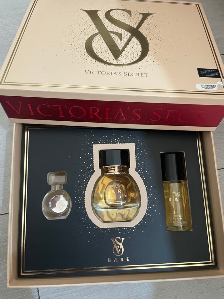 Victoria's Secret Bare parfüm seti, farklı boylarda üç şişe ve şık VS logosu ile tasarlanmış kutu içerir. Çanta boyu içinde yoktur.bir adet 50 ml parfüm ve parfüm yağı 30 ml harika bir koku ve çok şık kutusuyla yollayacağım