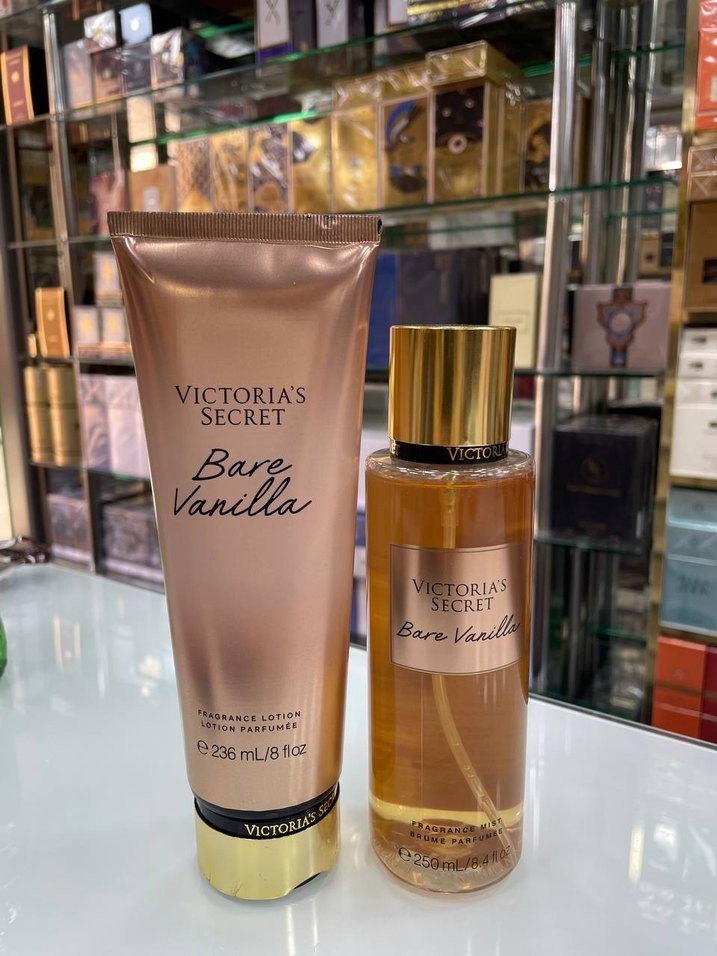Victoria's Secret Bare Vanilla kokulu 236 ml losyon ve 250 ml vücut spreyi seti, sıcak vanilya aromalıdır.