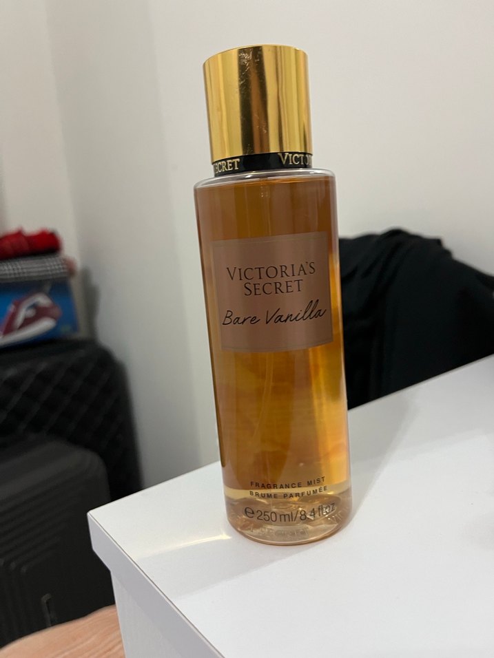 Victoria's Secret Bare Vanilla 250 ml boyutunda, sıcak ve davetkar bir koku sunan kadın parfümü. Altın kapak ve şeffaf şişede amber renkli sıvı bulunur.