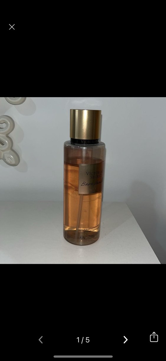Victoria's Secret kadın parfümü, altın kapaklı ve sıcak kehribar renginde sıvı içerir. Şık ve zarif bir şişesi vardır.