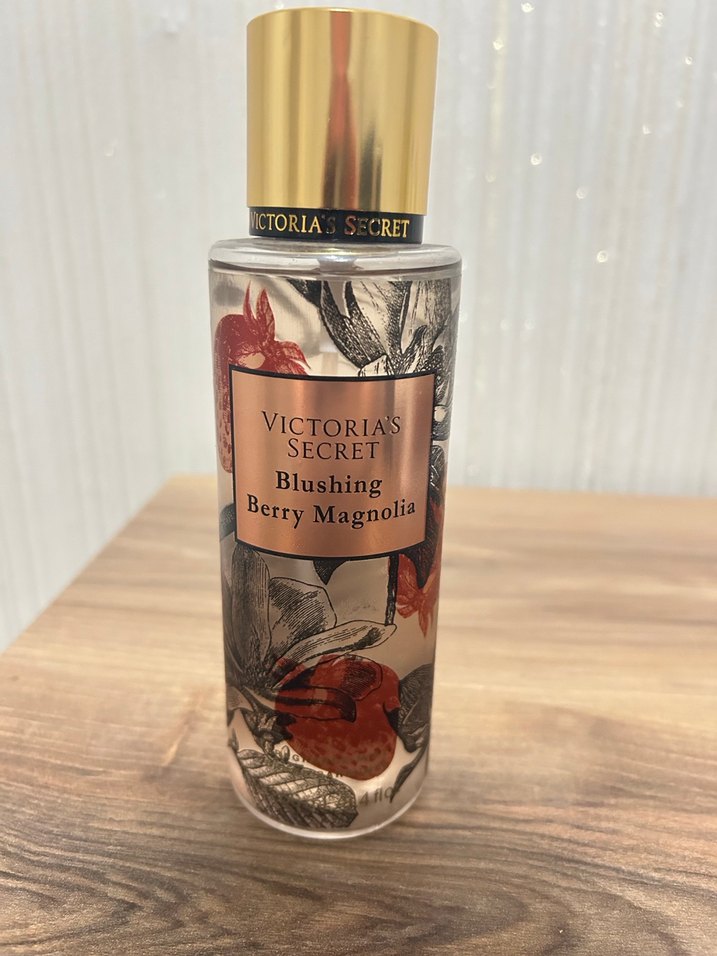 Victoria's Secret Blushing Berry Magnolia kadın parfümü, çiçeksi ve meyvemsi notalara sahip, dekoratif şişede.