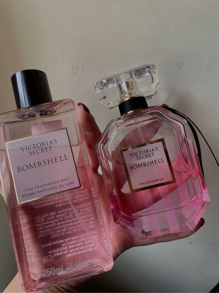 Victoria's Secret Bombshell set, ince kokulu mist ve eau de parfum içerir. Şık pembe şişelerde, taze ve feminen koku sunar. Kendime yakıştıramadım kokuları set olarak satıyorum orijinaldir sitesinden aldım görseli mevcut.