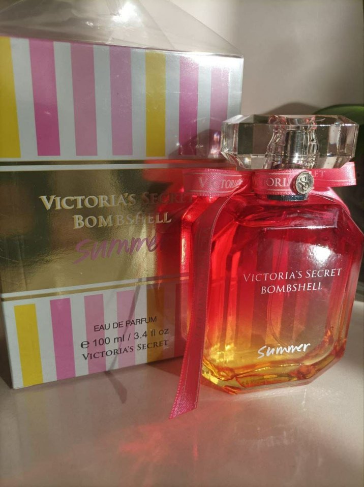 Victoria's Secret Bombshell Summer, 100 ml kadın eau de parfum, canlı ve ferah kokusu ile dikkat çeker. Şişe pembe-turuncu degrade renkli ve kurdele detaylıdır.