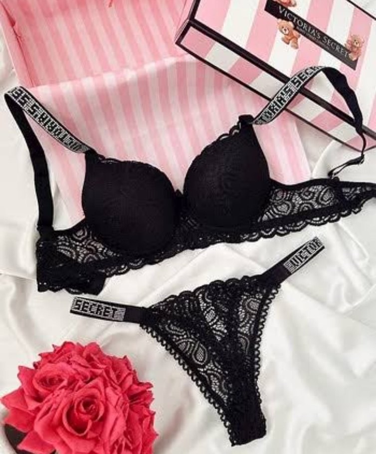 Victoria's secret Dantel İşlemeli Siyah Goth Sütyen Takımı