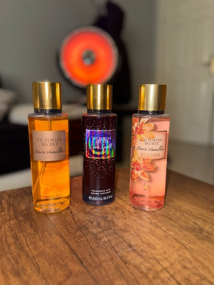 Victoria's Secret markalı, 250 ml üç kadın parfümü seti; Bare Vanilla ve Bare Vanilla Golden kokularını içerir.