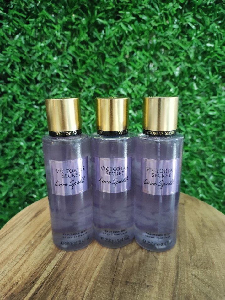 Victoria's Secret Love Spell kadın parfümü, 250 ml sprey şişede çiçeksi kokusuyla sunulur. Altın kapaklıdır.