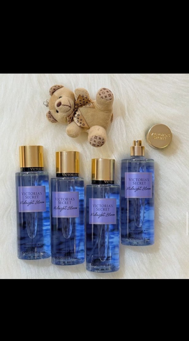 Victoria's Secret Midnight Bloom kadın parfümü, zarif mavi şişelerde altın kapaklı, derin ve çiçeksi bir koku sunar.