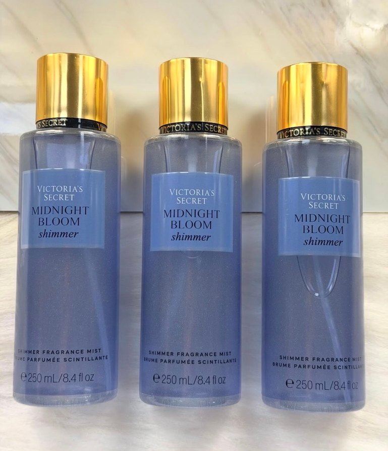 Victoria's Secret Midnight Bloom Shimmer 250ml altın kapaklı parfüm mist. Parlak formülüyle zarif ve etkileyici bir koku sunar.✨