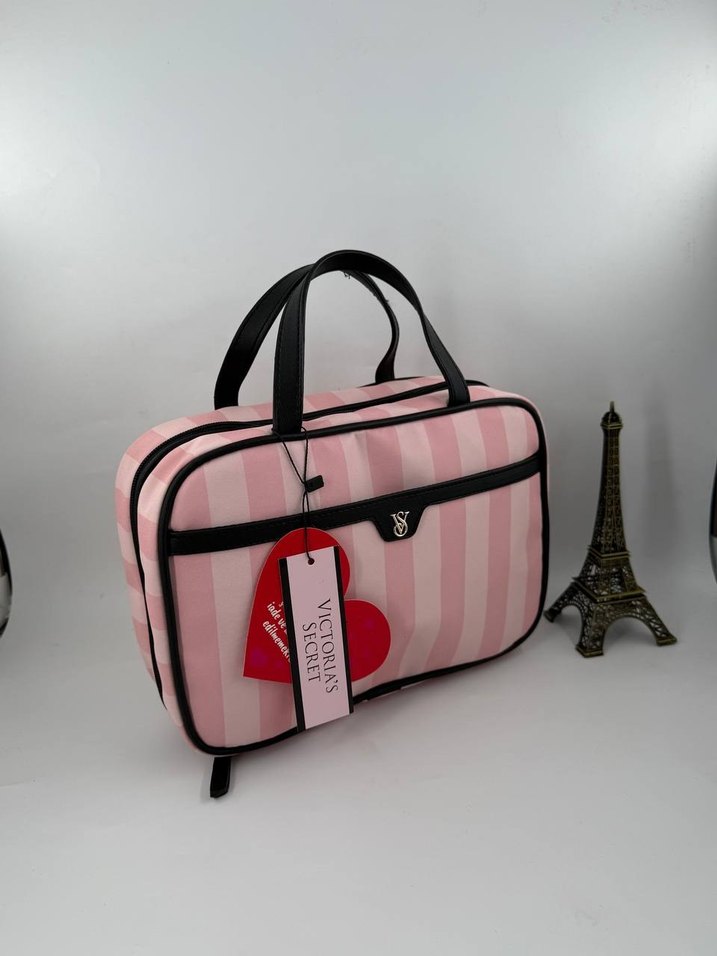 Victoria's Secret Pembe Çizgili Makyaj Çantası