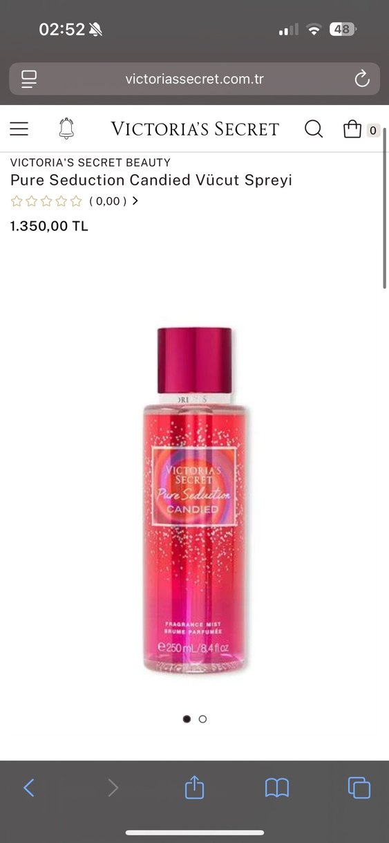 Orijinal ürün kodu var. Tamamı dolu sayılır Victoria's Secret Pure Seduction Candied vücut spreyi, 250 ml şişede tatlı ve ferah bir koku sunar. Kalıcı bir koku deneyimi sağlar