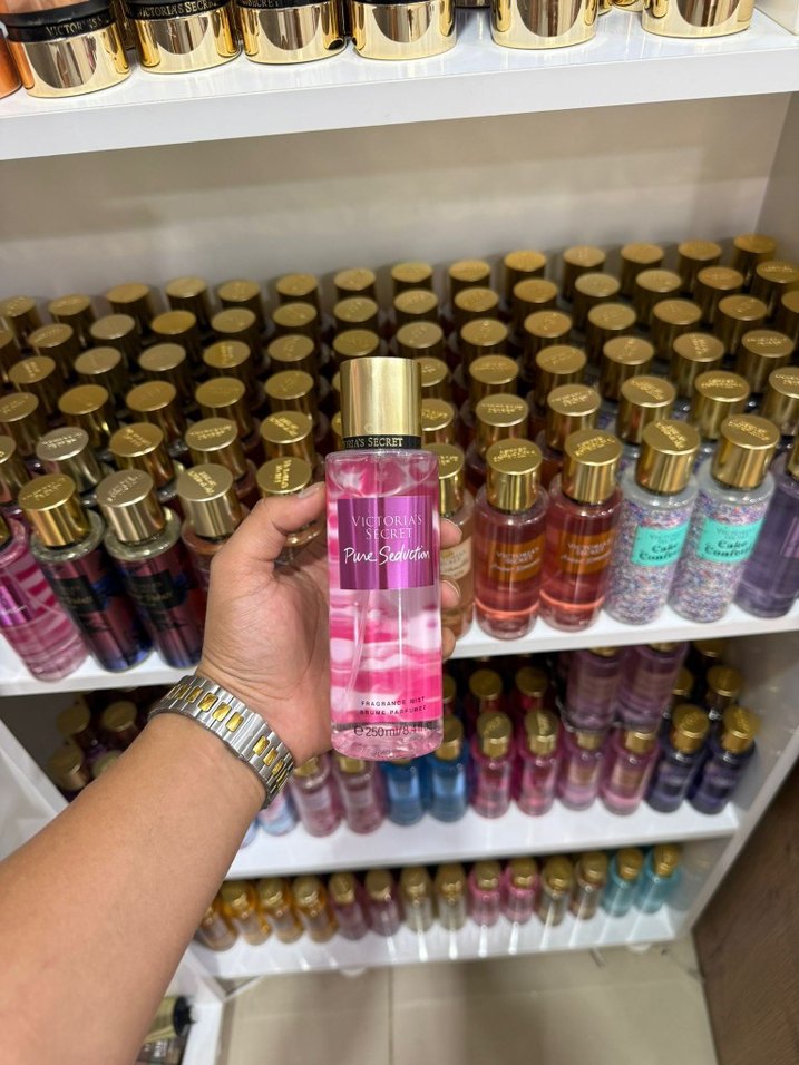 Victoria's Secret Pure Seduction kadın parfümü, 250 ml şişede çiçeksi koku ve altın kapak ile sunuluyor.