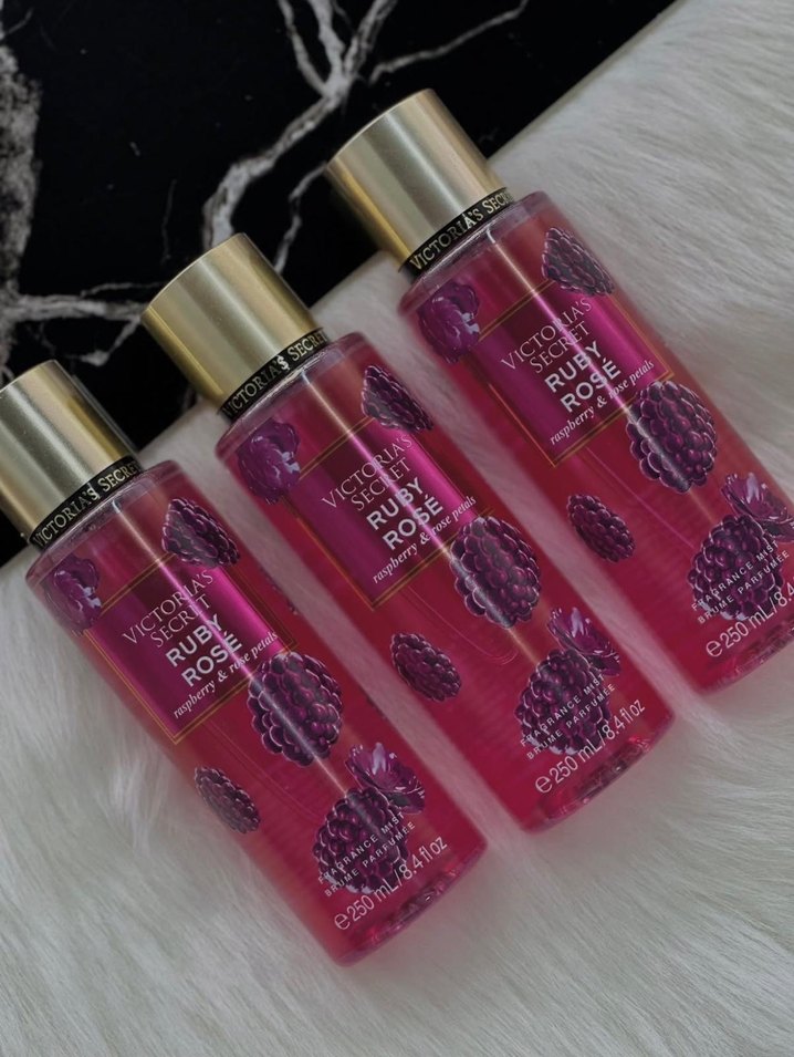 Victoria's Secret Ruby Rose kadın parfümü, ahududu kokulu, 250 ml şişede. Meyvemsi ve ferah bir koku.