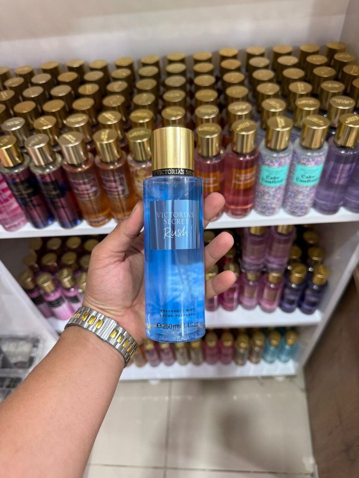 Victoria's Secret Rush 250 ml kadın parfümü, mavi sıvı ve altın kapaklıdır. Ferah ve canlı bir koku sunar.