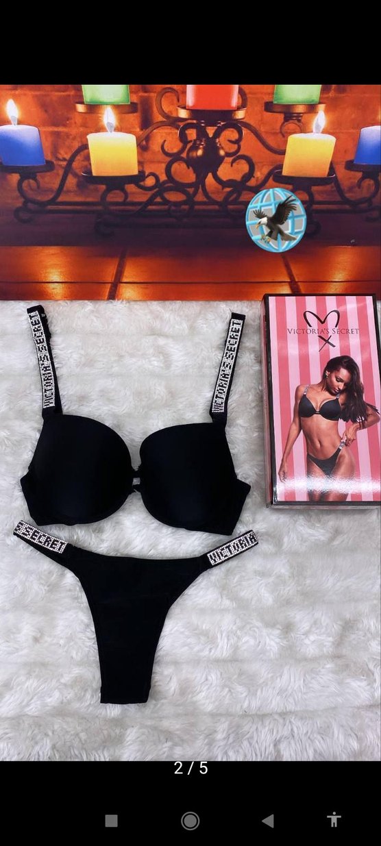 Victoria's Secret siyah mini sütyen, baskılı askıları ve rahat kesimiyle sokak modasına uygun bir set sunar. Sütyen ve uyumlu mini alt parçadan oluşur. Ürün sıfır etiketlidir ✨ S M L XL bedenleri mevcuttur ✨