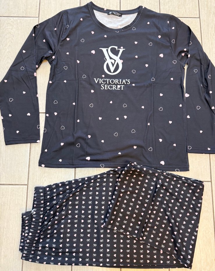 Victoria's Secret siyah renkli, kalpli desenli kadın pijama takımı,sıfır yakalı, Şık ve kaliteli pijama takımı Rahatlık arayanlar için bedenleri vardır S/M/L/XL #trendpijama #penti #victoriasecret #suwen #dagi #m&s #h&m #lcwdreams #uspa #polo