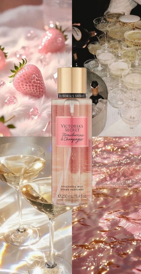 Victoria's Secret Strawberries & Champagne parfüm mist, çilek ve şampanya notalarıyla 250ml şişede ferah ve meyvemsi bir koku sunar.