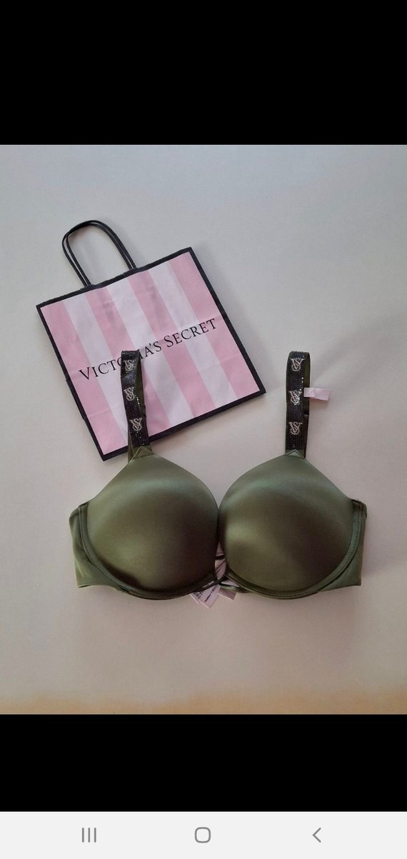 32 D beden.... %65 Polyamid Bombshell ışıltılı askılı sütyen, Maksimum kaldırma özellikli,ışıldayan monogram askılı 2 bedene kadar büyük gösteren push-up dolgu, balenli Ayarlanabilir askılı yeşil orjinal etiketi üstünde