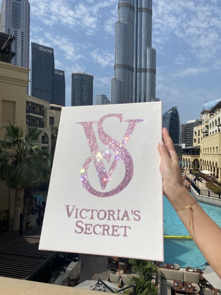 Victoria's Secret logosu ışıltılı tablo moda ve tasarım sevenler için ideal.