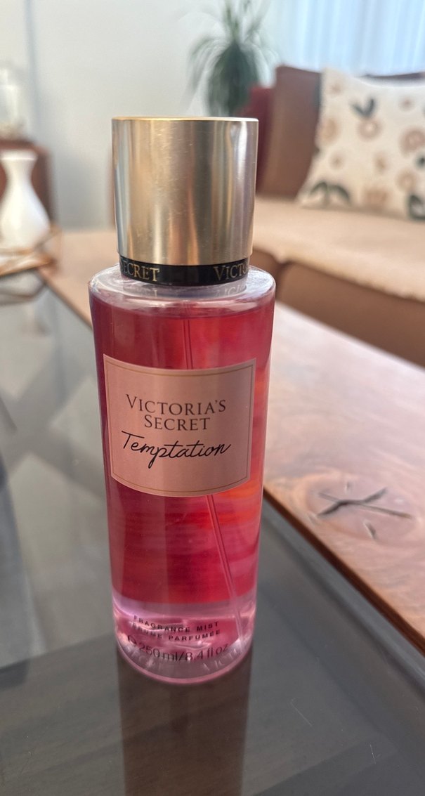 Victoria's Secret Temptation kadınlar için hoş kokulu bir sprey. Pembe sıvısı ve altın kapaklı tasarımıyla dikkat çeker.