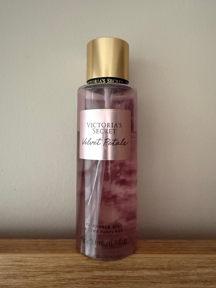 Victoria's Secret Velvet Petals, tatlı, yumuşak ve çiçeksi bir kokuya sahip 250 ml body mist. Görseldeki kadar kullandım.