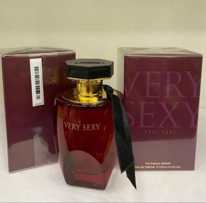 Victoria's Secret Very Sexy kadın parfümü, 100 ml şişede yoğun ve çekici kokuya sahiptir. Şişe koyu kırmızı, siyah kurdele ve altın detaylarla tasarlanmıştır.