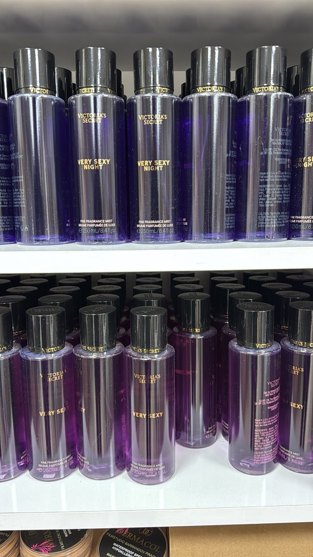 Victoria's Secret Very Sexy Night kokulu sprey, gece kullanımı için uygun koyu mor şişede, altın yazılı detaylarla sunuluyor.