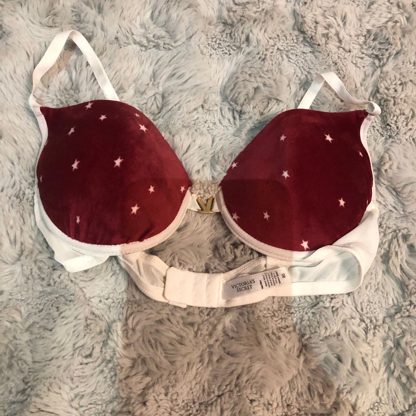#VİCTORIA’S SECRET 90 BEDEN KADİFE Bordo renkli, beyaz ayarlanabilir askılı, yıldız desenli rahat sütyen, güvenli kapanışlı ⭐