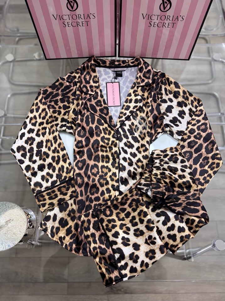 VICTORIA SECRET BASKILI PİJAMA TAKIMI. Sıfır etiketlidir. S, M, L, XL, XXL ve 3XL bedenler mevcuttur. A++ kalitedir. İpek saten kumaştır.