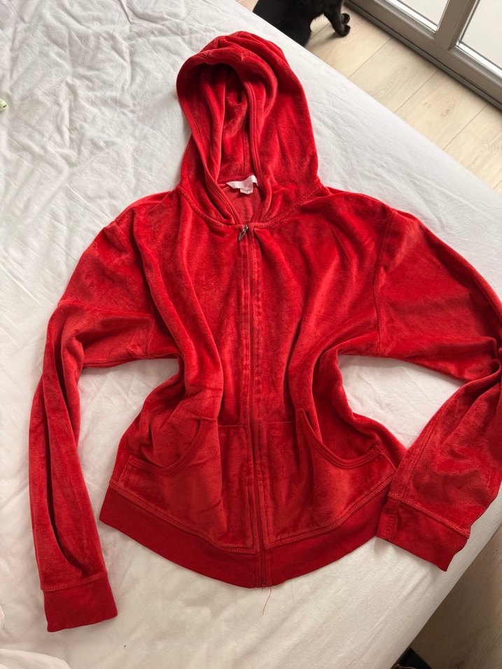 Kırmızı, kapüşonlu ve fermuarlı bu kadın ceketi, yumuşak ve sıcak kumaştan yapılmıştır. Uzun kollu, normal boyda ve parlak görünümlüdür. Günlük sokak stili için uygundur.