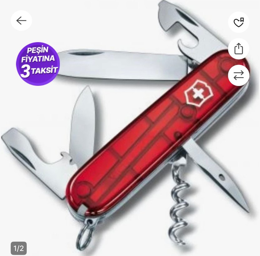Kırmızı çok fonksiyonlu anahtarlık, bıçak, tirbuşon, açacak,kalem gibi araçlar içerir. Orijinal İsviçre çakısıdır.