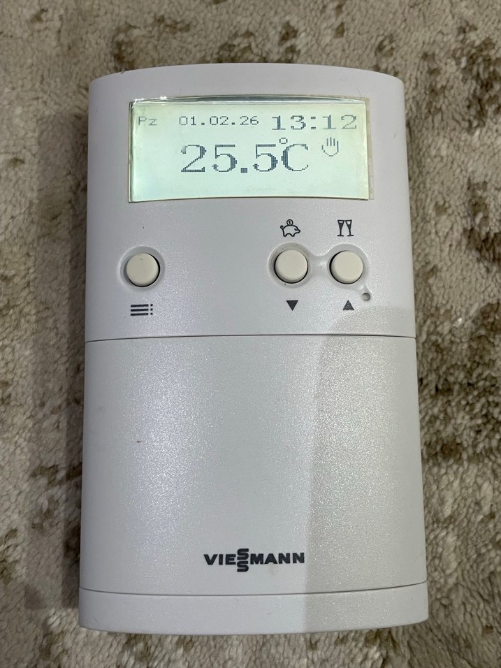 Viessmann marka beyaz oda TERMOSTATI iç ünite dijital ekranda sıcaklık ve zamanı gösterir. Kullanımı kolay kontrol düğmeleri bulunur. ️