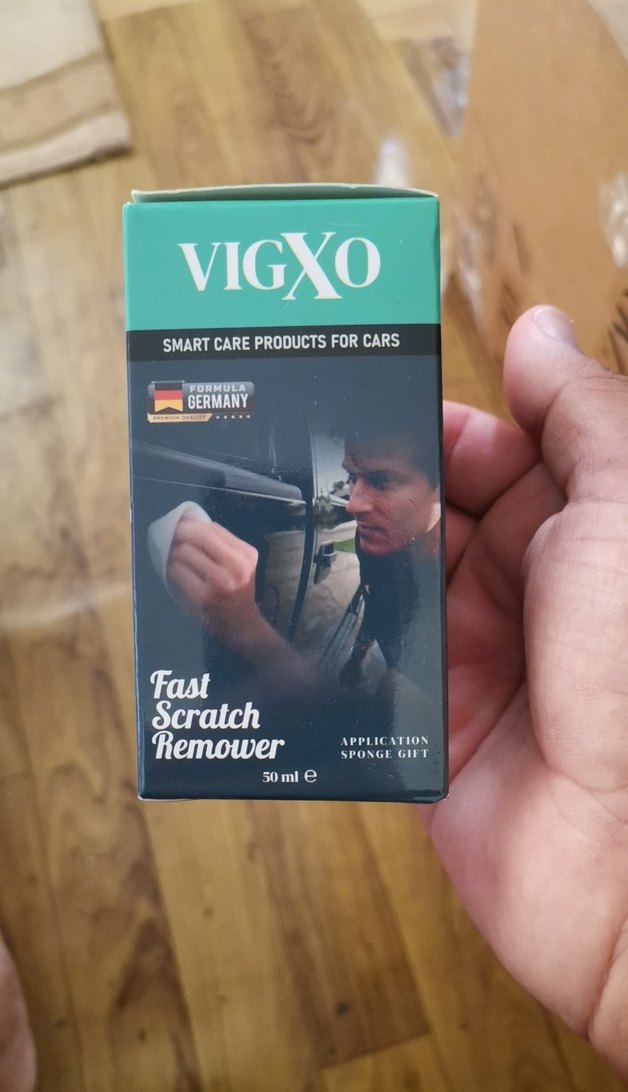 VIGXO'nun 50 ml hızlı çizik giderici ürünü, uygulama süngeri ile birlikte gelir. Alman formüllü araç bakım ürünü.