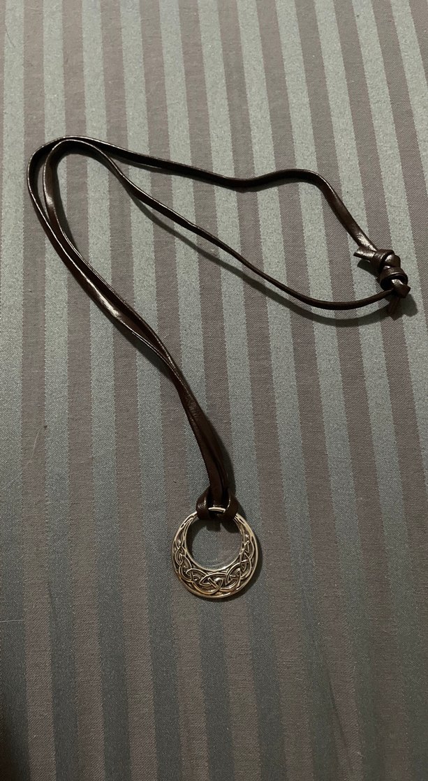 Kolye ucunun bir tarafı komple gümüş bir tarafı sarıdır. İp suni deridir.