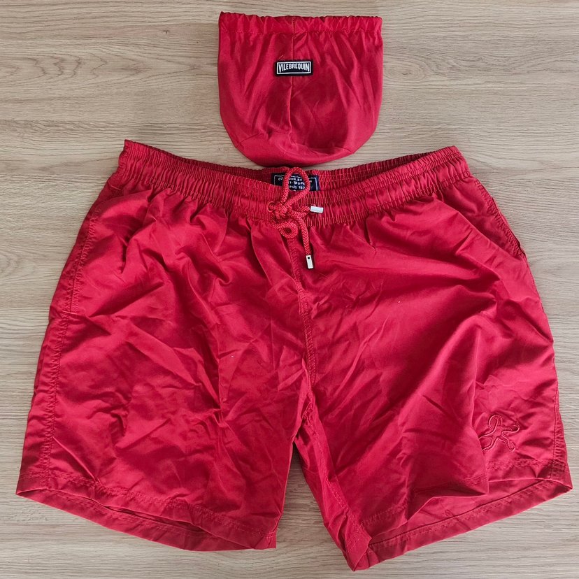 Kırmızı renkte, fermuarlı cep detaylı, VilebreQuin erkek deniz şortu. Plaj ve sokak tarzına uygun, yanında kendi saklama torbasıyla ile gelir.