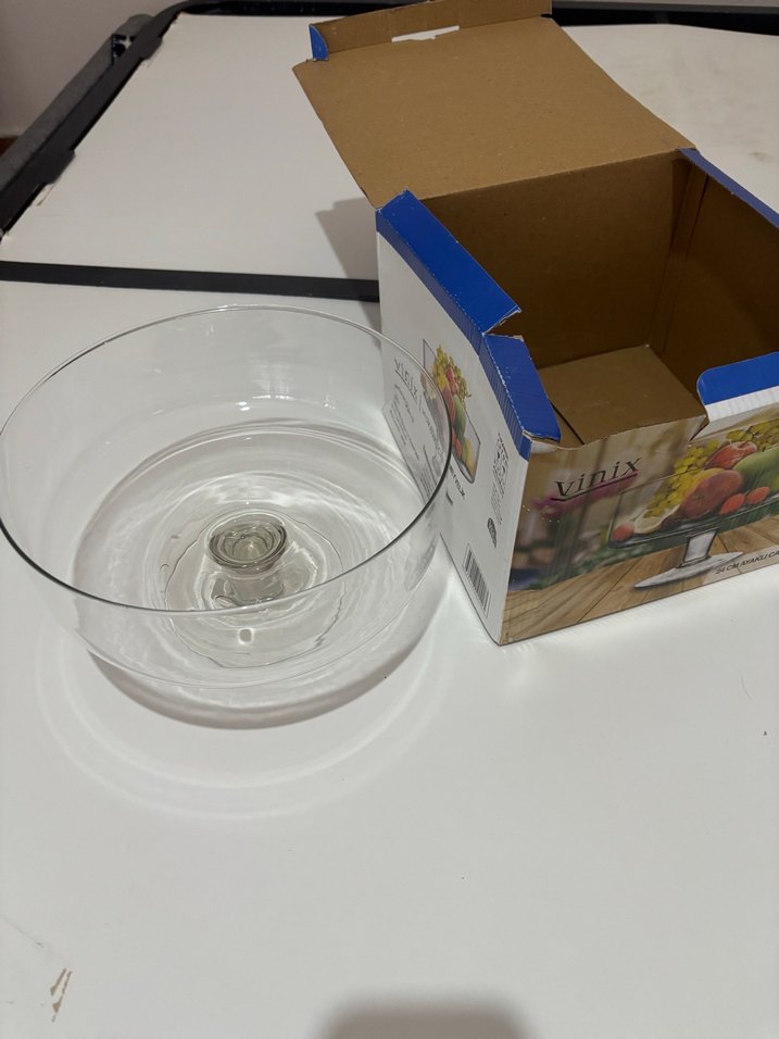Vinix markasına ait, baskılı karton kutusunda şeffaf cam kase. Hafif ve sade tasarıma sahiptir. ️