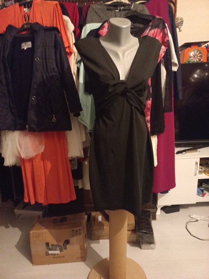 V yakalı, drapeli ve siyah renkte, gövdeyi saran midi elbise. Kolsuz tasarımı ve gotik tarzıyla ofis şıklığı için ideal. esnektir vatkalıdır boy 89cm l beden yazmasına rağmen m bedene daha uyumludur