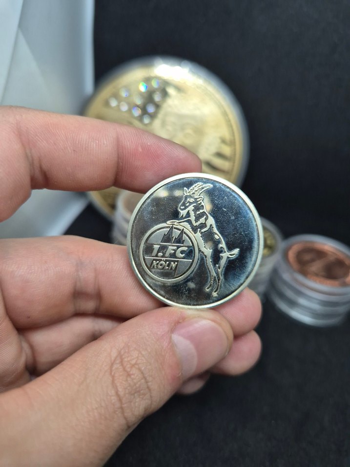 Gri ve altın renginde klasik tasarıma sahip vintage 1. FC Köln erkek rozet. ️