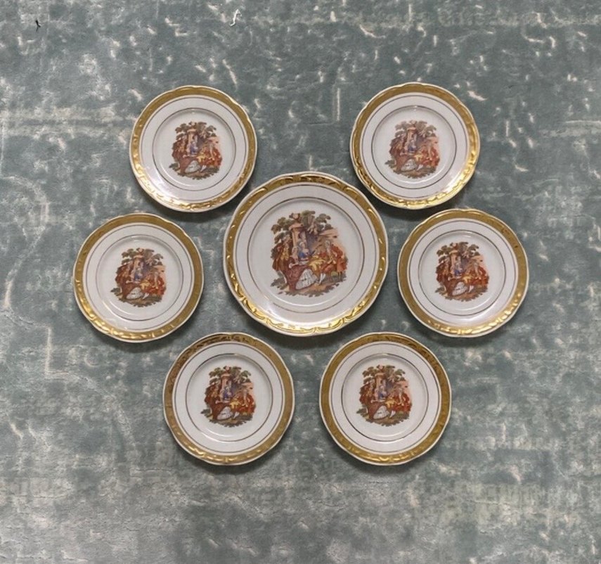 Vintage 7li Dekoratif Porselen Tabak Seti