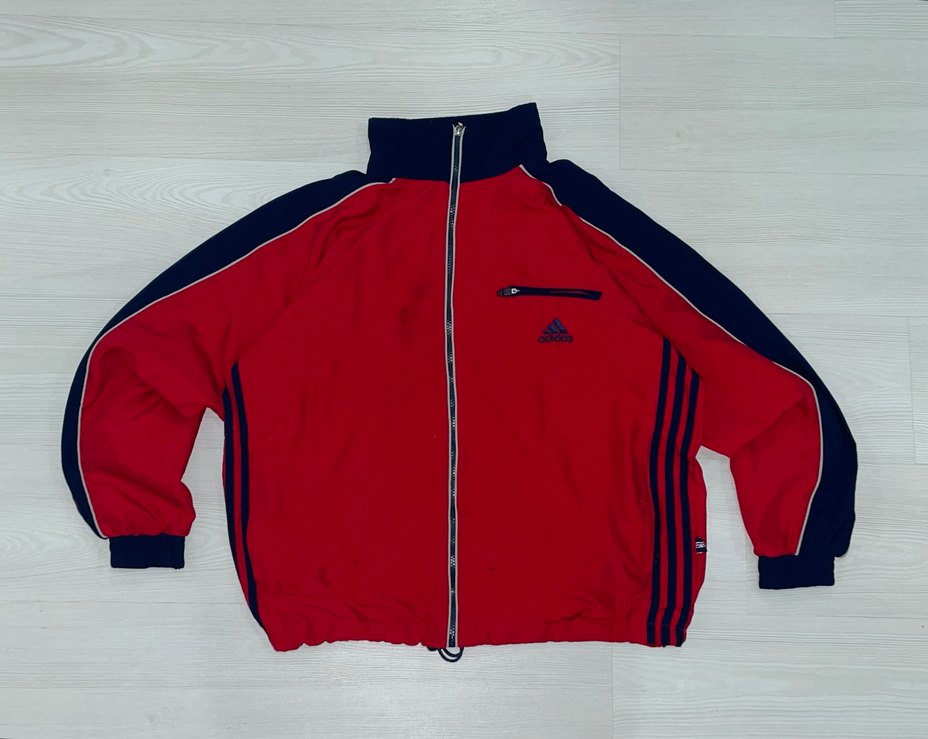 Orijinal vintage Adidas kırmızı–lacivert track jacket, 90’ların sonu ile 2000’lerin başında streetwear ve spor modasında en çok öne çıkan geniş kalıp, yüksek yaka ve kontrast renk detaylarıyla dönemin ikonik tarzını yansıtan bu model hem koleksiyonluk hem de günlük kombinlerde retro sevenlerin favorisi olacak nadir bir parçadır.önünde çok ufak kalem lekesi var. Ölçüleri kontrol edip satın alınız.Tam boy 59cm,İki koltuk arası 52cm,Kol 53cm